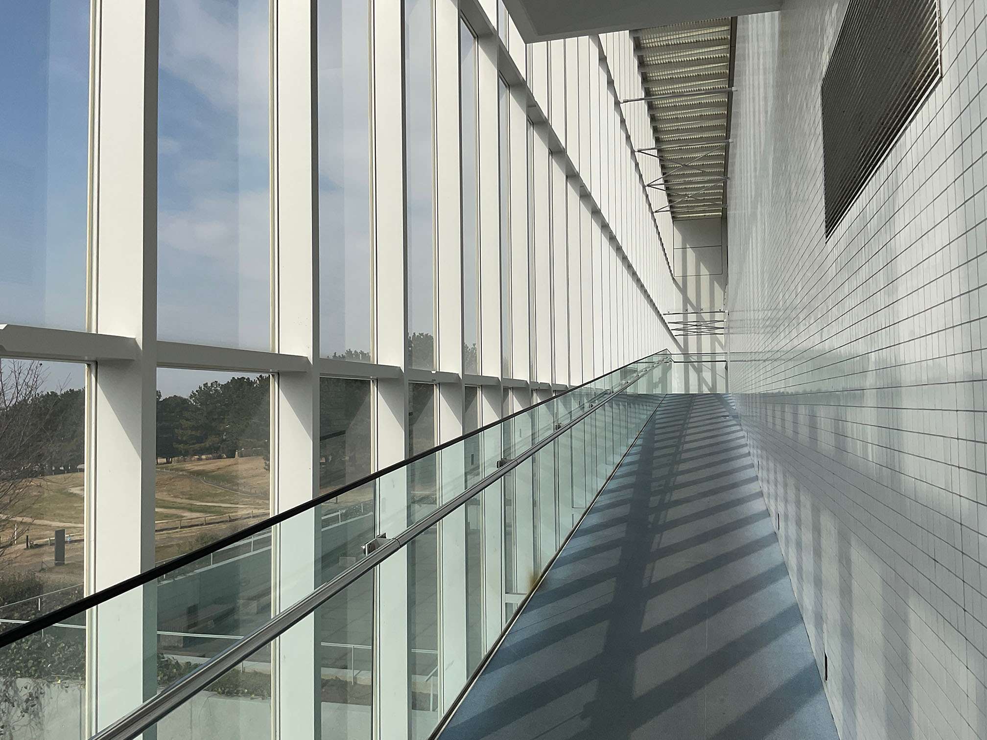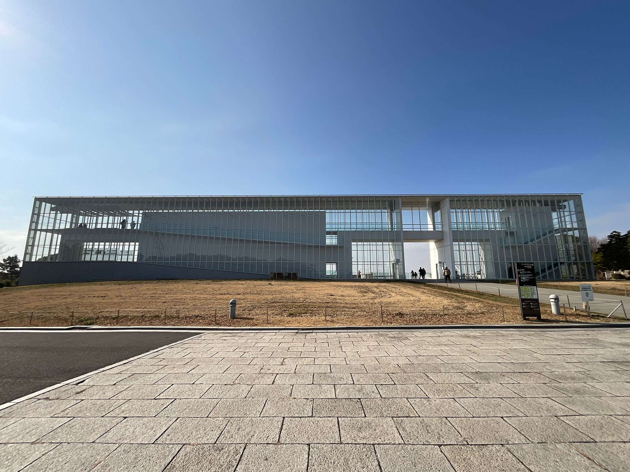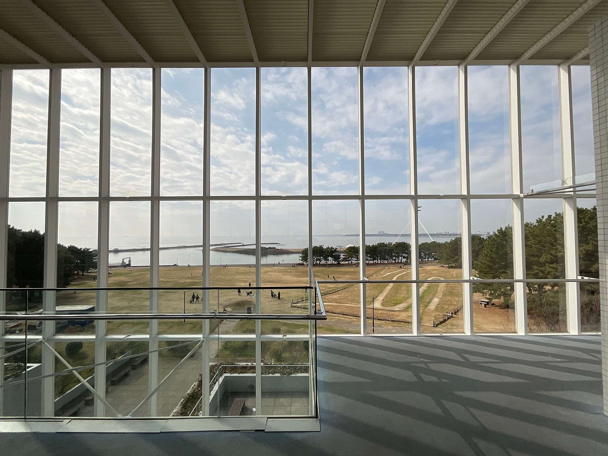 まっすぐに伸びた白い鉄骨とガラスが織りなす建築は、どこか軽快で透明感を感じさせる美しさを備えています。
