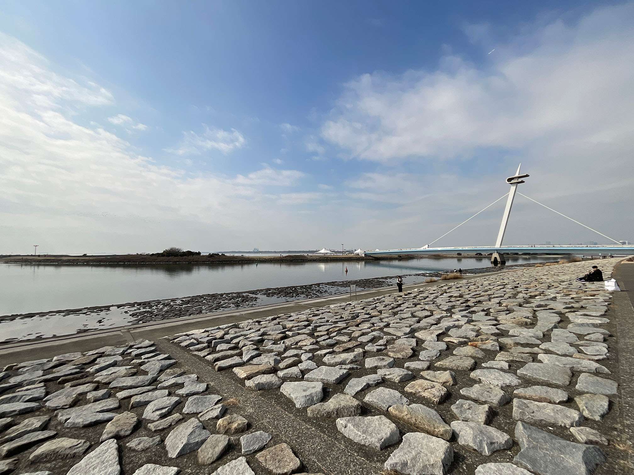 葛西渚橋という吊り橋を渡った先は「西なぎさ」エリアで、干潟が広がっており水鳥などのバードウォッチングを楽しむ人たちが大勢カメラや双眼鏡を構えていました。