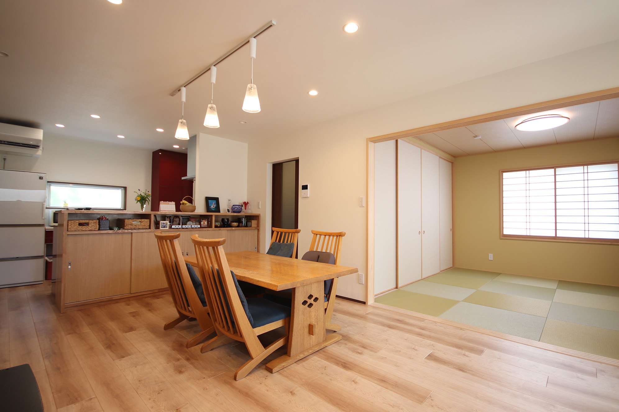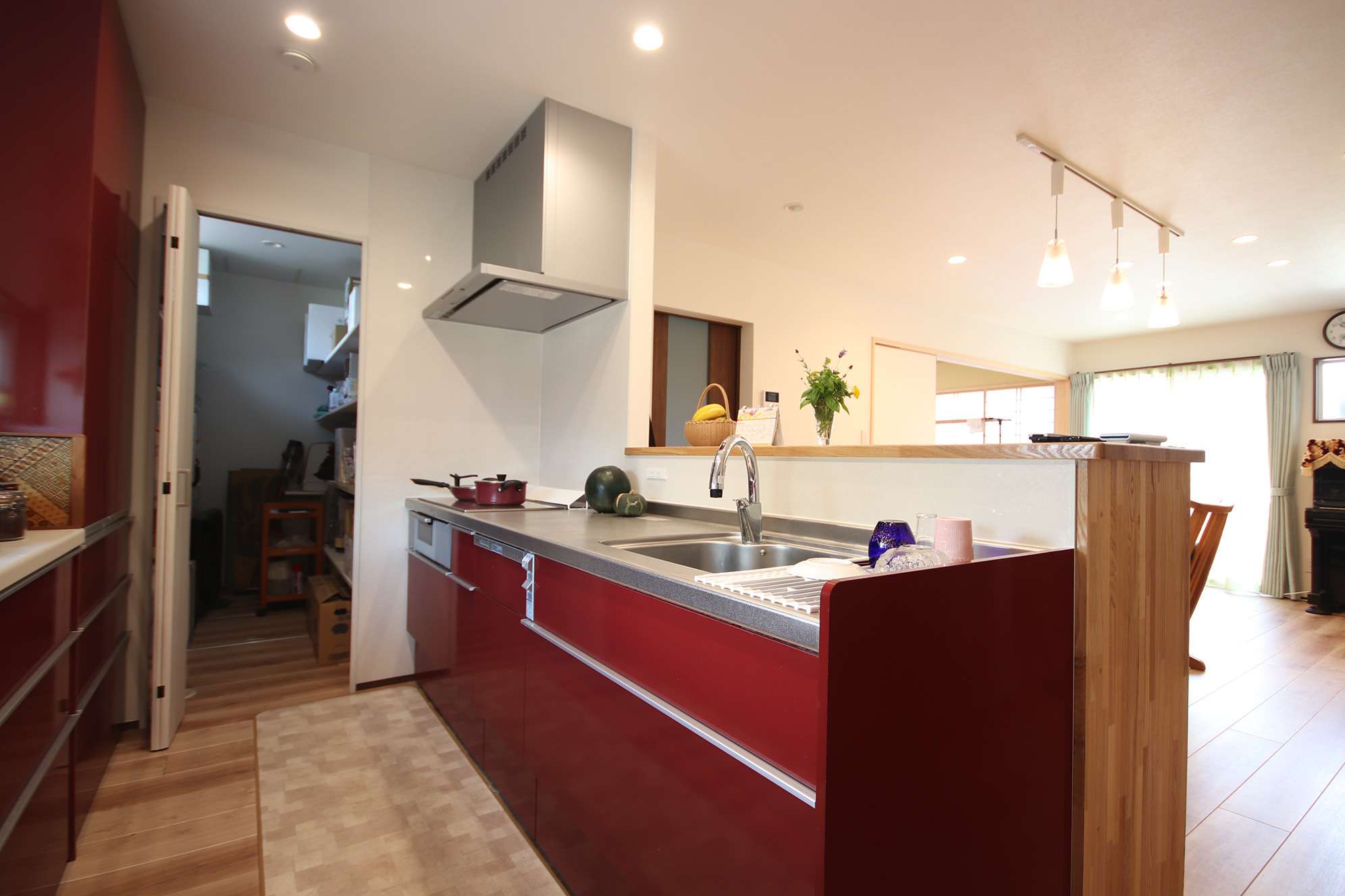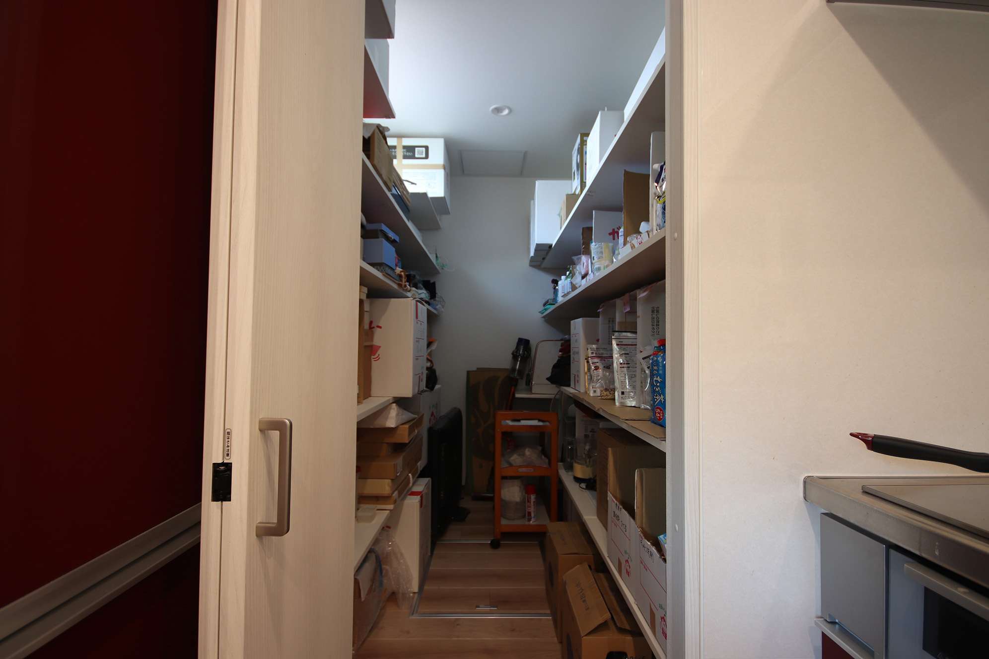 お母さんの趣味である、お茶を楽しむ和室や油絵を描くアトリエなど、こだわりを詰め込みつつ、パントリーは大容量の3畳にして、建て替え前からの荷物がすべて収まるように収納スペースを提案した。