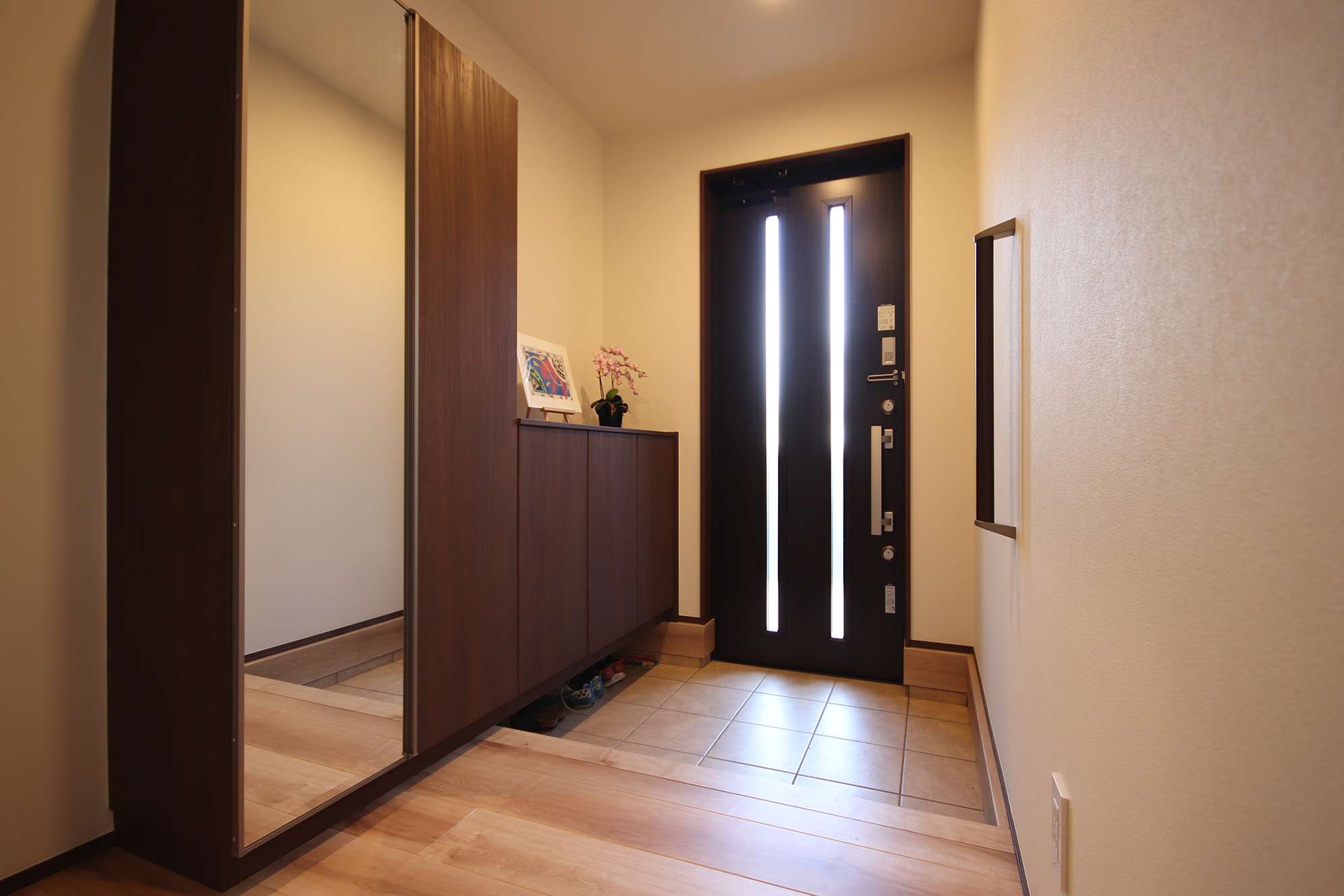 建て替え前の住宅は最も日当たりのよい場所に玄関があって、もったいないと考えていたため、日当たりのよいLDKとなるように玄関位置を調整して、間取りを決めていった。